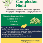 Please join us for FAFSA Night. WHSAD Guidance Team, Creative Connections Coaches, and Volunteers will be at WHSAD on Thursday December 11th from 5:45 - 8:00 pm to help students/families complete the free financial aid applications (FAFSA & TAP). Please RSVP at terraferma@whsad.org … [Read more...]