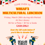 WHSADs annual Multicultural Day Luncheon Fundraiser is March 28th during 4th period. Student and staff can purchase $5.00 plates. Please help make this success by donating a food item. Please fill out this form https://forms.gle/CWvu3r1RKdvbQQdV9 … [Read more...]