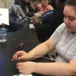 What is electricity? WHSAD students got their curiosity sparked in today's lab. By adding an electrochemical battery to a sugar and then a salt solution, they were able to tell which of the two compounds conducts electricity. Then they had to explain what about the atomic structure of ionic and covalent compounds allowed the conduction of electrons through solution. This Chemistry lesson dovetails with what the students are doing in Mr. O'Brien & Ms Moos's Building and Design class. In those classes, they build electrical circuits; in Chemistry they learn how electricity flows on the submicroscopic level. Watch the attached videos for their explanations. … [Read more...]