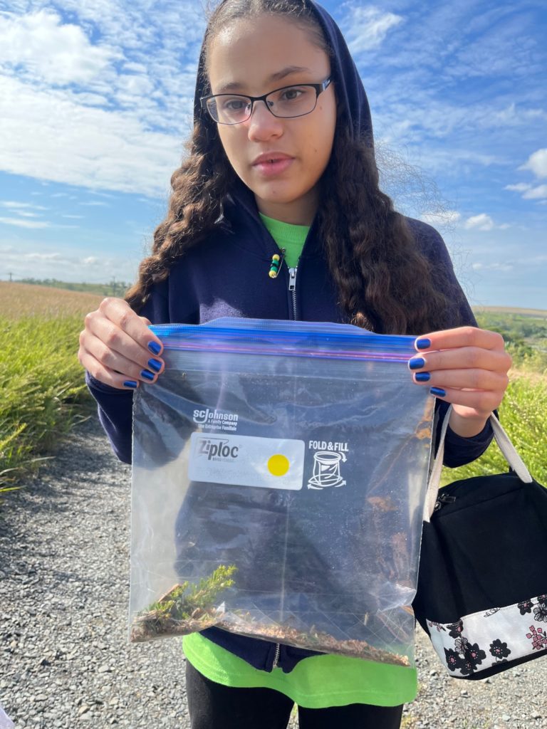 Morgan shows off her haul at Freshkills Park for the habitat assessment.