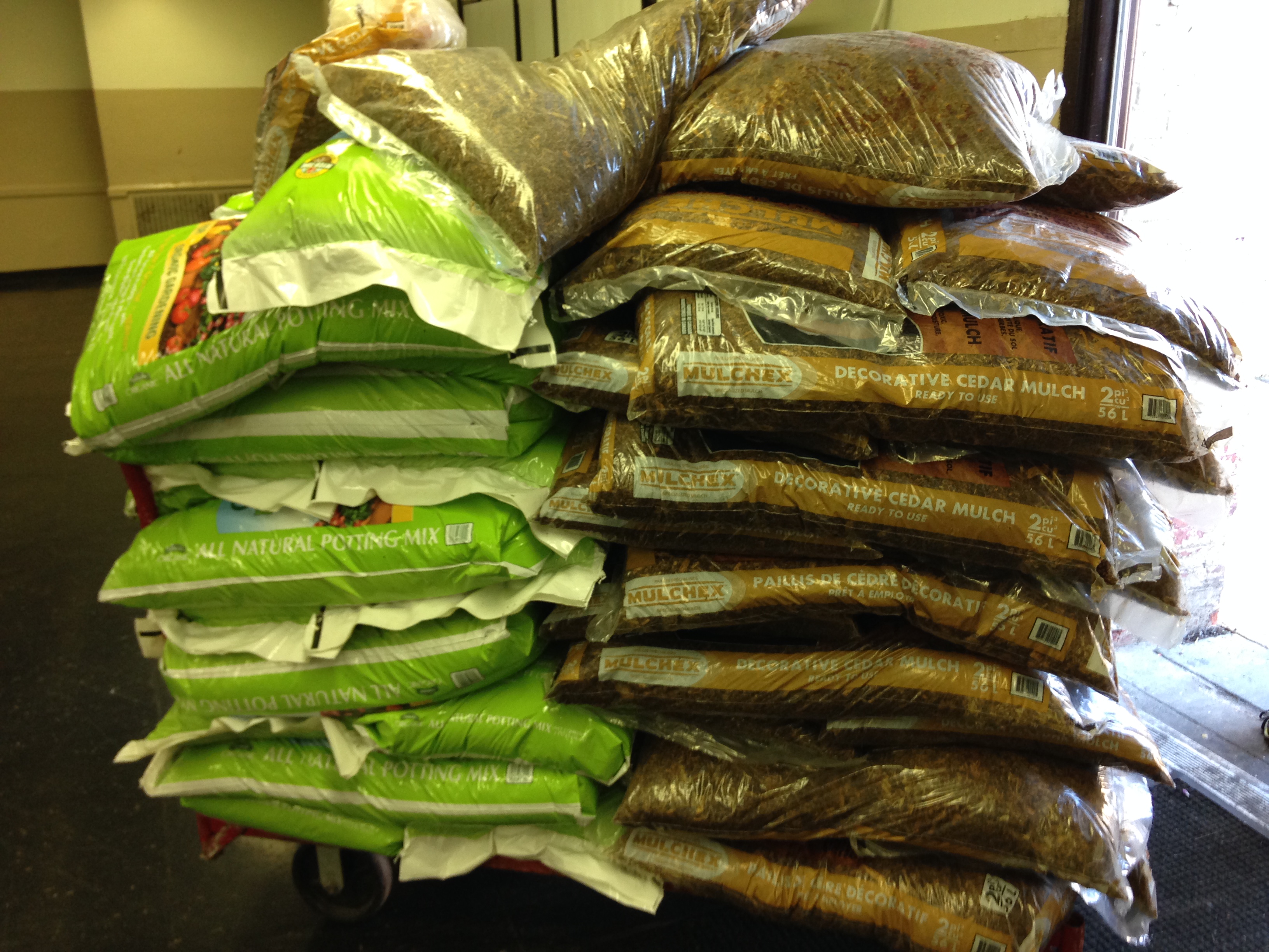 - Senior Brandon John and Mr. Codio moving the soil and mulch
