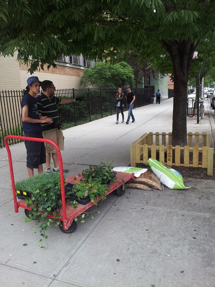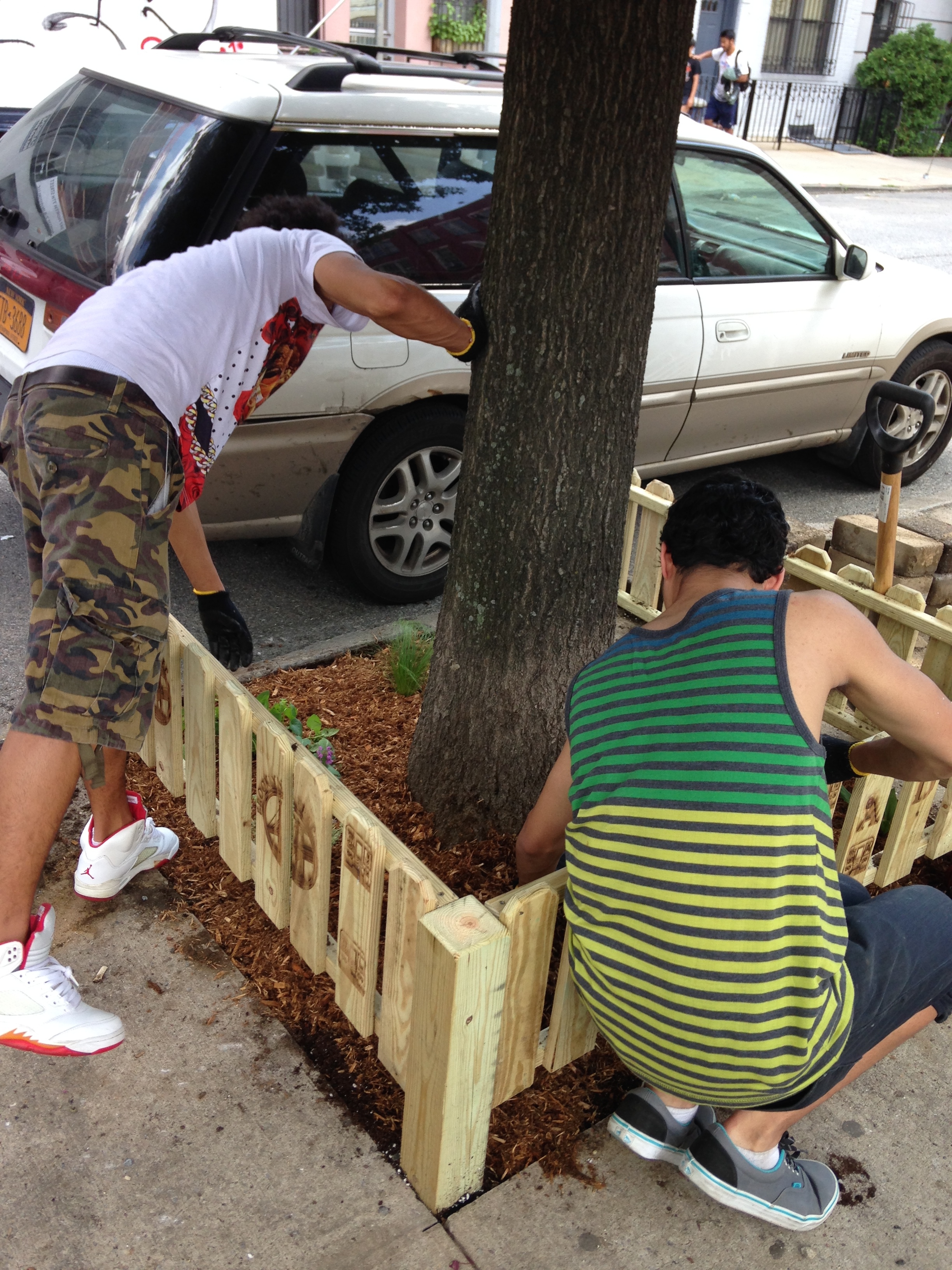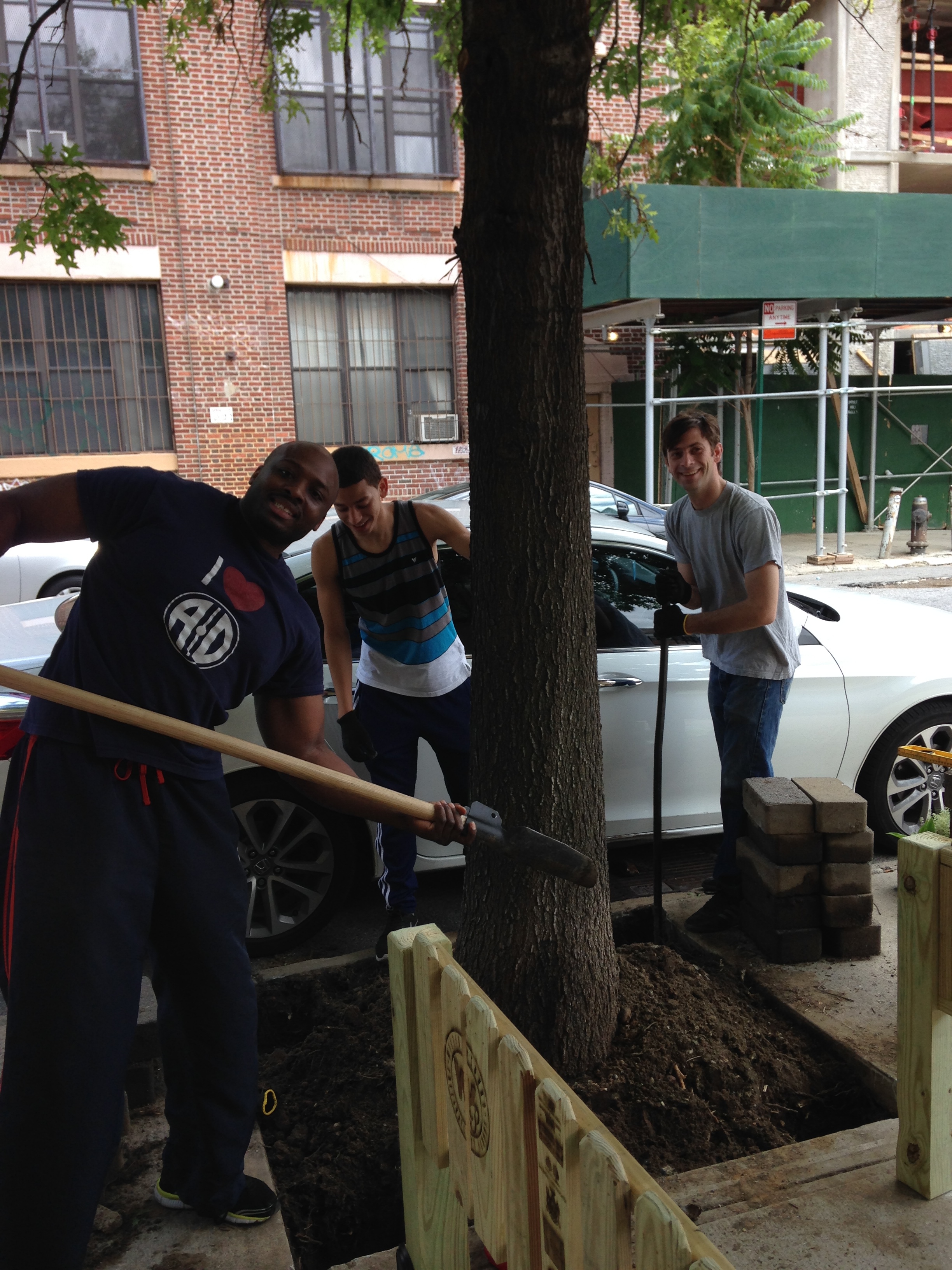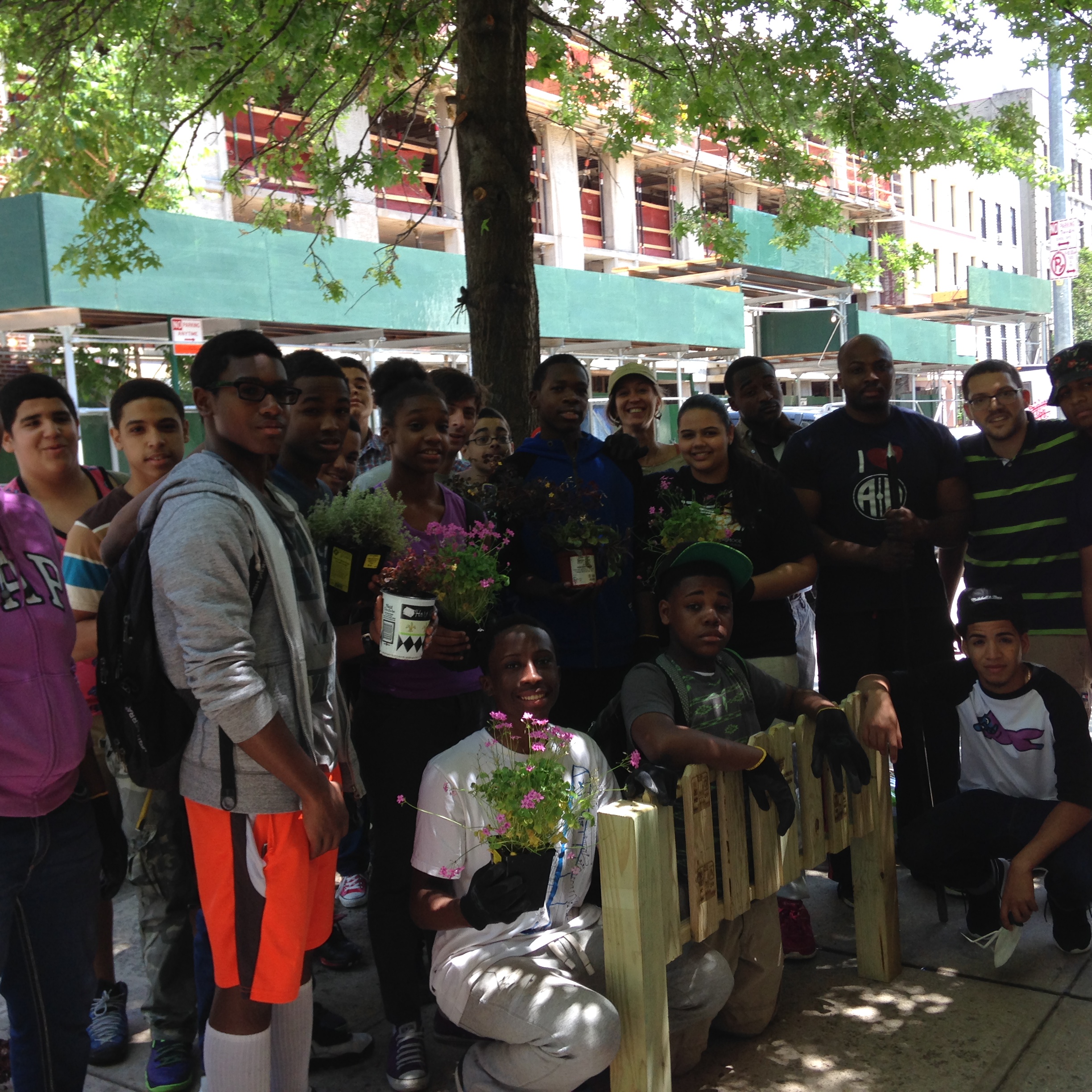 The final phase of Operation Teach.Learn.Grow kicked off on Saturday, June 14th when WHSAD students were joined by Council member Steven Levin to assemble and garden the remaining 15 Walentas Family Foundation tree guards. On their last weekend as WHSAD Seniors 15 upper class-men began the effort early in the morning, but as the day progressed and Regents prep ended the number of students working on the community service project reached to about 40 students. The tree guards are located along North 7th Street between Roebling and Havemeyer Street, in front of Brooklyn Bowl and Charlotte Patisserie on Manhattan Avenue. The tree guards are in addition to those that have been assembled by the North Brooklyn Development Corp, the Polish Slavic Center, and the Greenpoint Youth Court. On a bright Saturday morning that was perfect for gardening the students received a workshop on tree care skills led by Council member Levin’s Environmental Policy Advisor Lisa Bloodgood. Dana Rachlin of the Greenpoint Chamber of Commerce worked with students and the designers to select businesses for this project. Mr. Codio, Mr. Jones, and Senior Randy Morfe led the students in the assembly and design phase of the project. A Special Thank You goes to the Walentas Family Foundation for funding this community service project and WHSAD’s Machinist, Tommy Sheridan for cutting all the wood and working with Mr. Codio on streamlining the process.