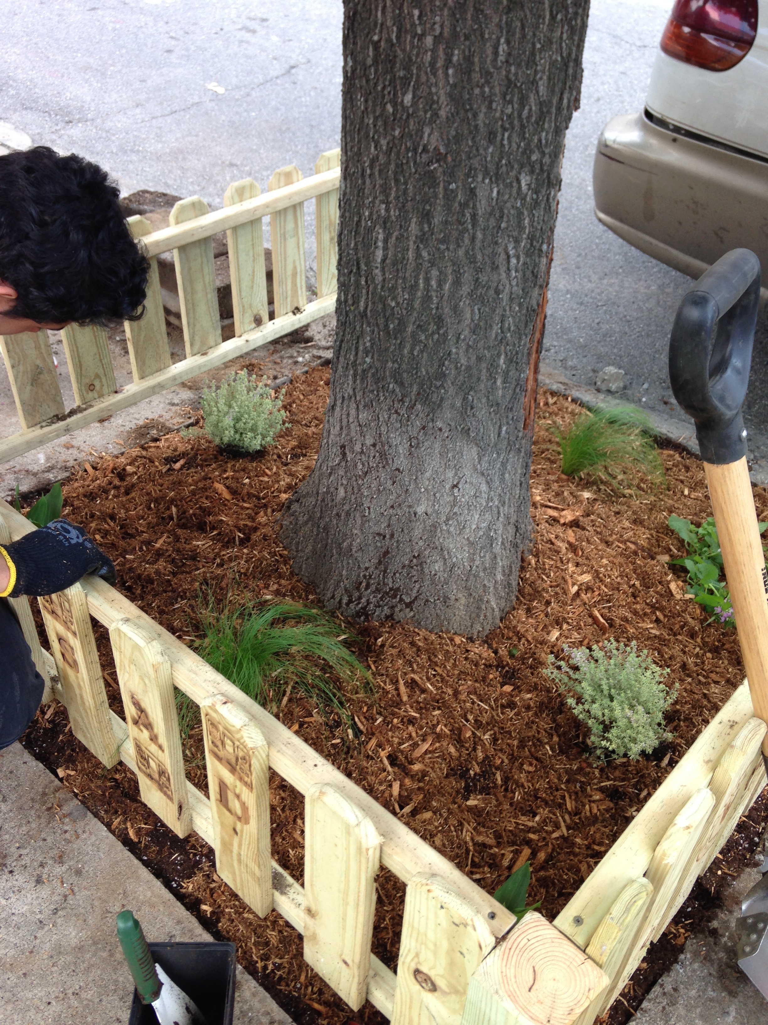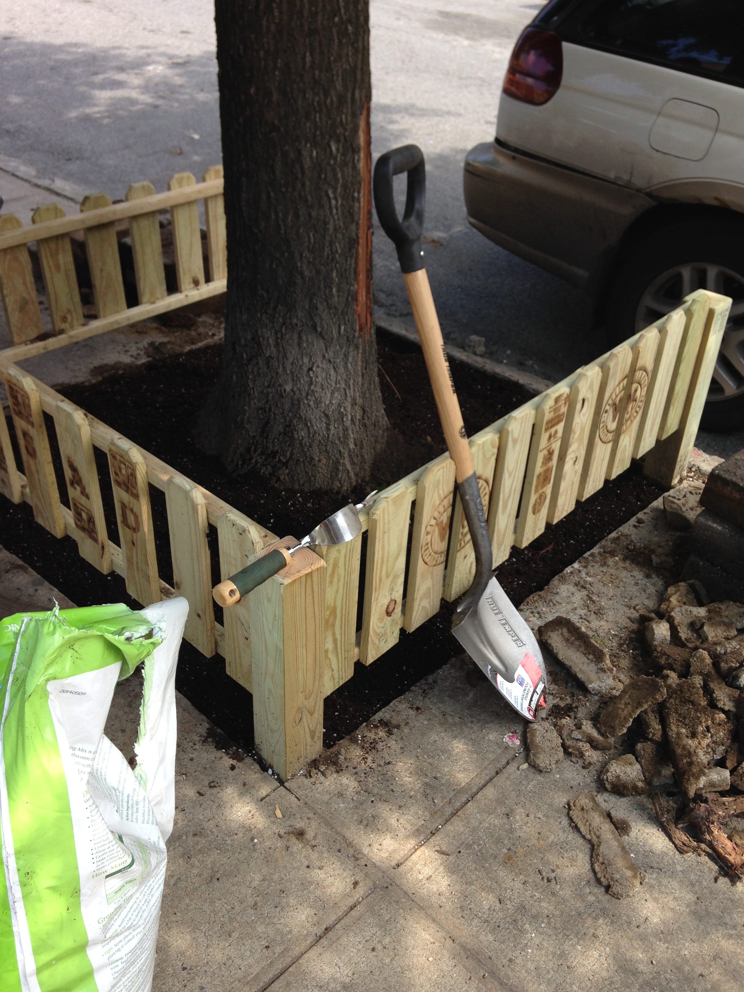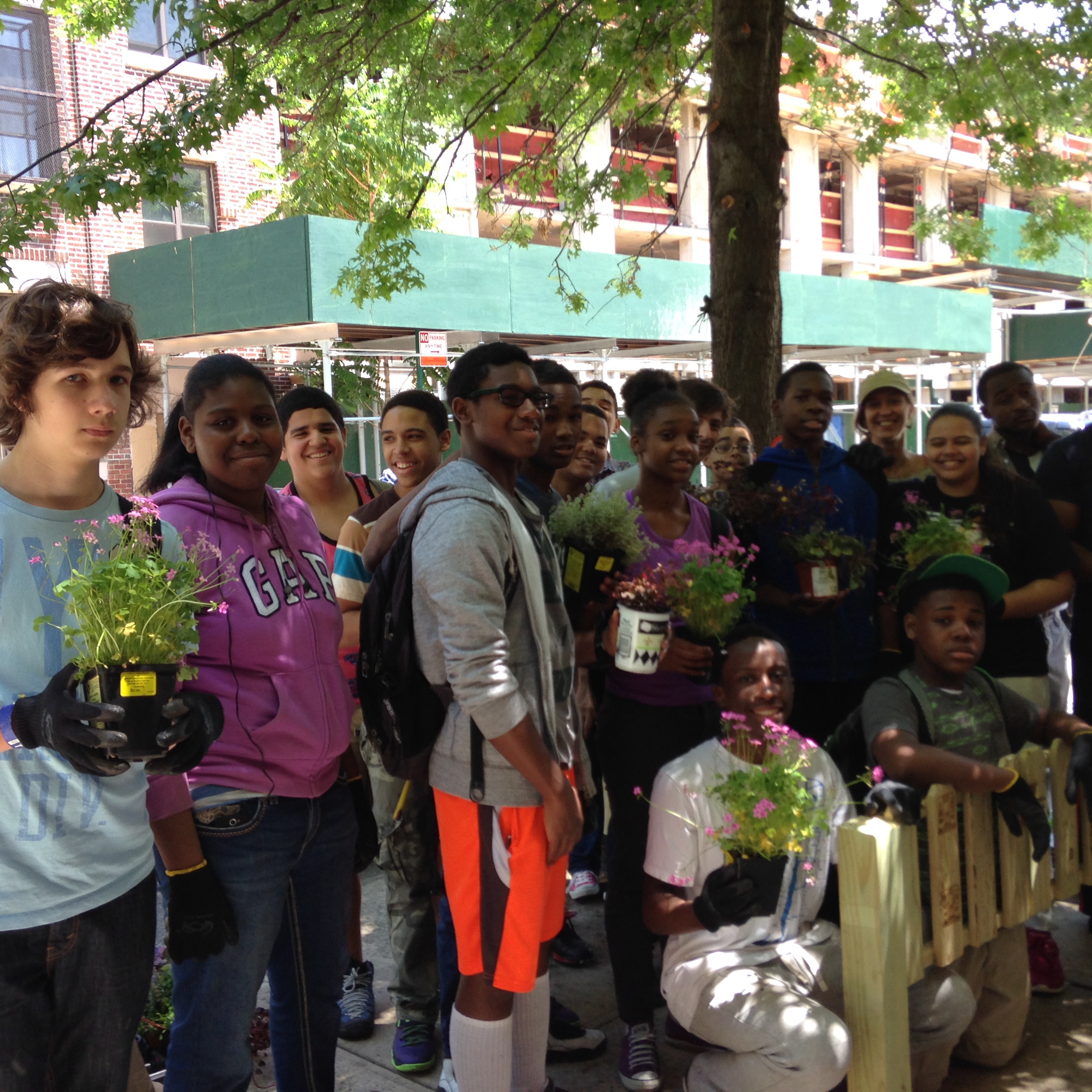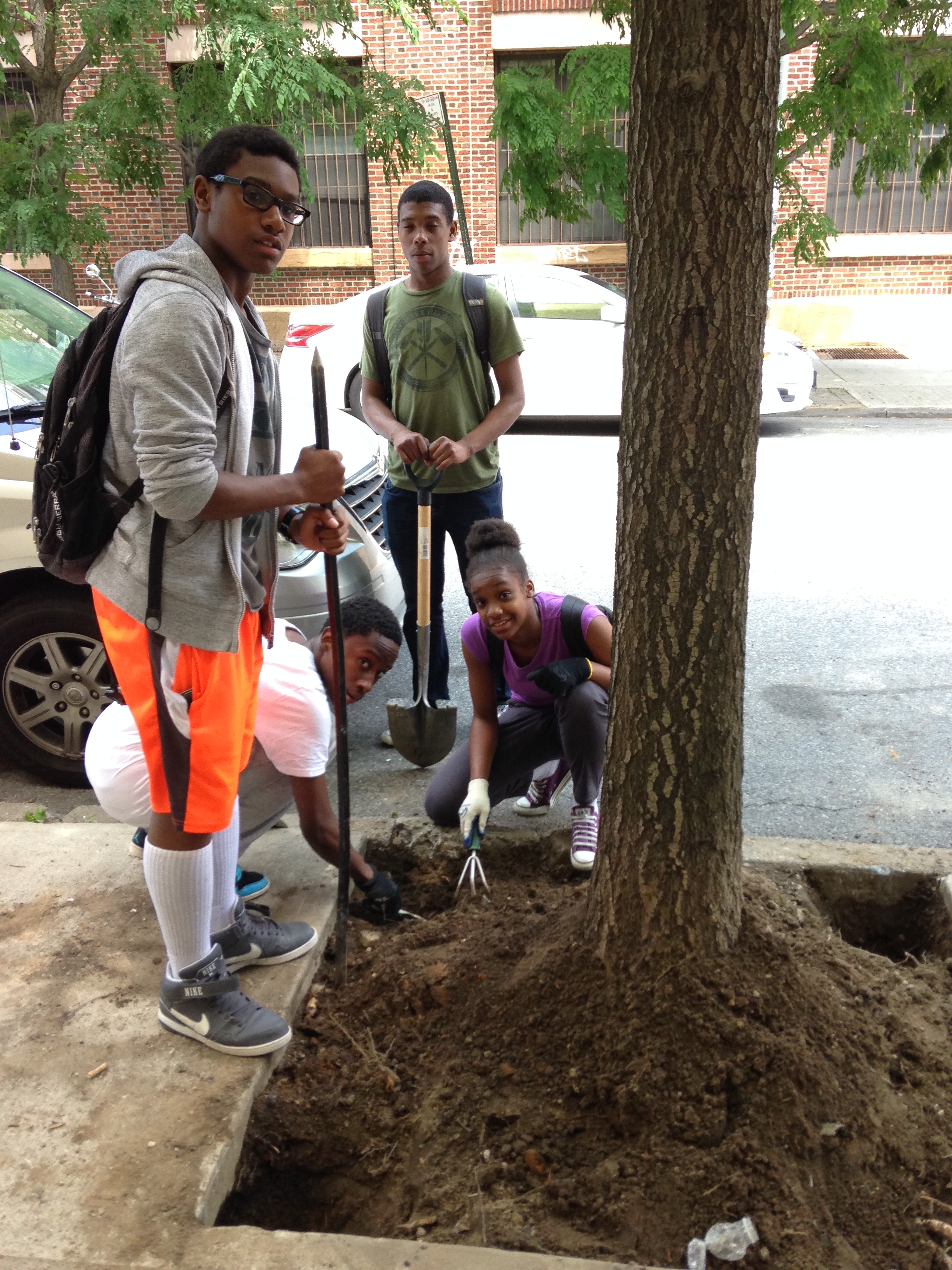 The final phase of Operation Teach.Learn.Grow kicked off on Saturday, June 14th when WHSAD students were joined by Council member Steven Levin to assemble and garden the remaining 15 Walentas Family Foundation tree guards. On their last weekend as WHSAD Seniors 15 upper class-men began the effort early in the morning, but as the day progressed and Regents prep ended the number of students working on the community service project reached to about 40 students. The tree guards are located along North 7th Street between Roebling and Havemeyer Street, in front of Brooklyn Bowl and Charlotte Patisserie on Manhattan Avenue. The tree guards are in addition to those that have been assembled by the North Brooklyn Development Corp, the Polish Slavic Center, and the Greenpoint Youth Court. On a bright Saturday morning that was perfect for gardening the students received a workshop on tree care skills led by Council member Levin’s Environmental Policy Advisor Lisa Bloodgood. Dana Rachlin of the Greenpoint Chamber of Commerce worked with students and the designers to select businesses for this project. Mr. Codio, Mr. Jones, and Senior Randy Morfe led the students in the assembly and design phase of the project. A Special Thank You goes to the Walentas Family Foundation for funding this community service project and WHSAD’s Machinist, Tommy Sheridan for cutting all the wood and working with Mr. Codio on streamlining the process.