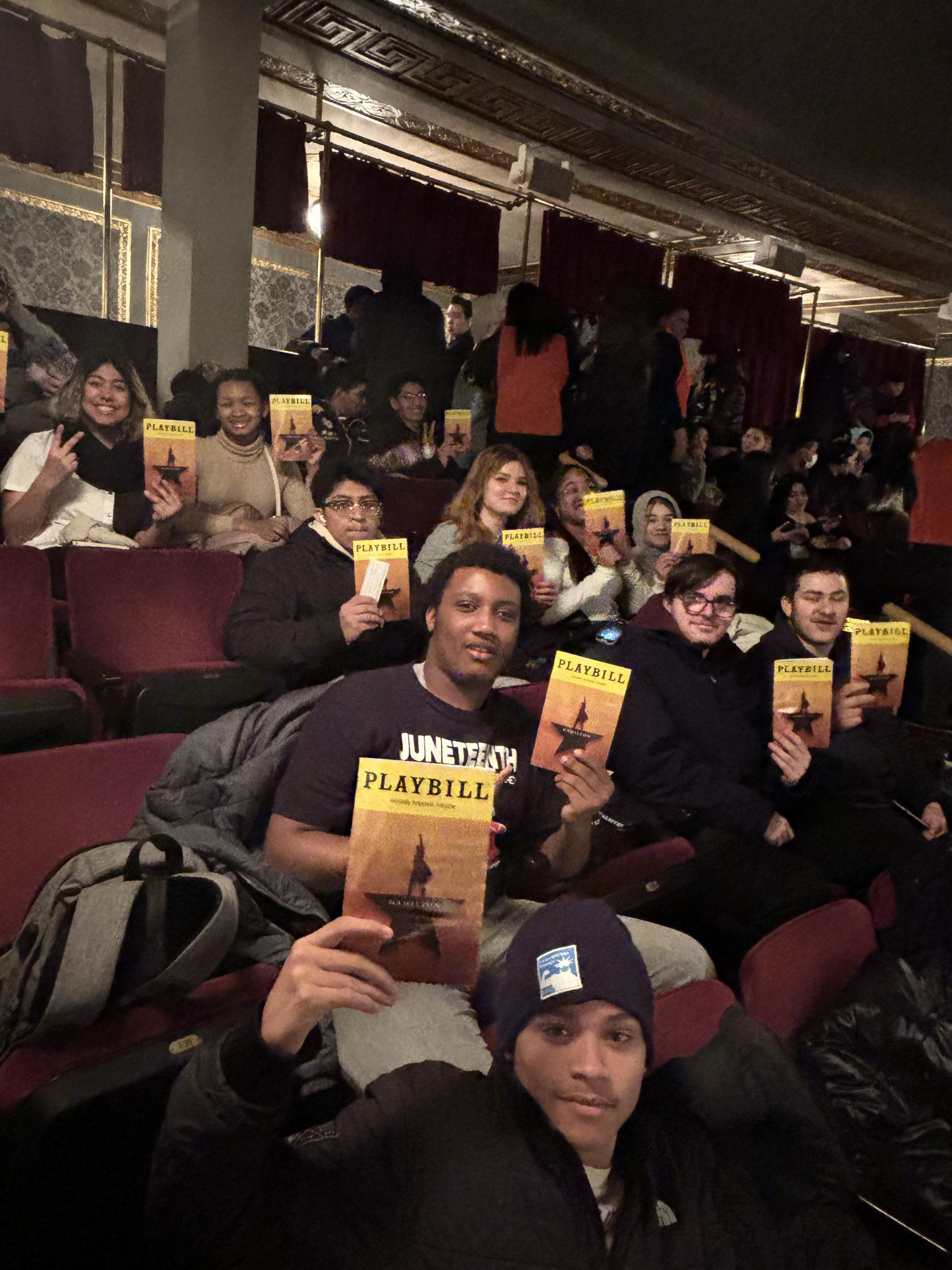 Last Wednesday a group of 11th grade students went to see Hamilton live on Broadway! This was a rare and wonderful opportunity made possible by Gilder Lehrman and the Rockefeller Foundation. In addition to the show, students were able to participate in a Q&A with the cast and crew afterwards. It was truly a wonderful experience, from the performance to the knowledge that came with it.