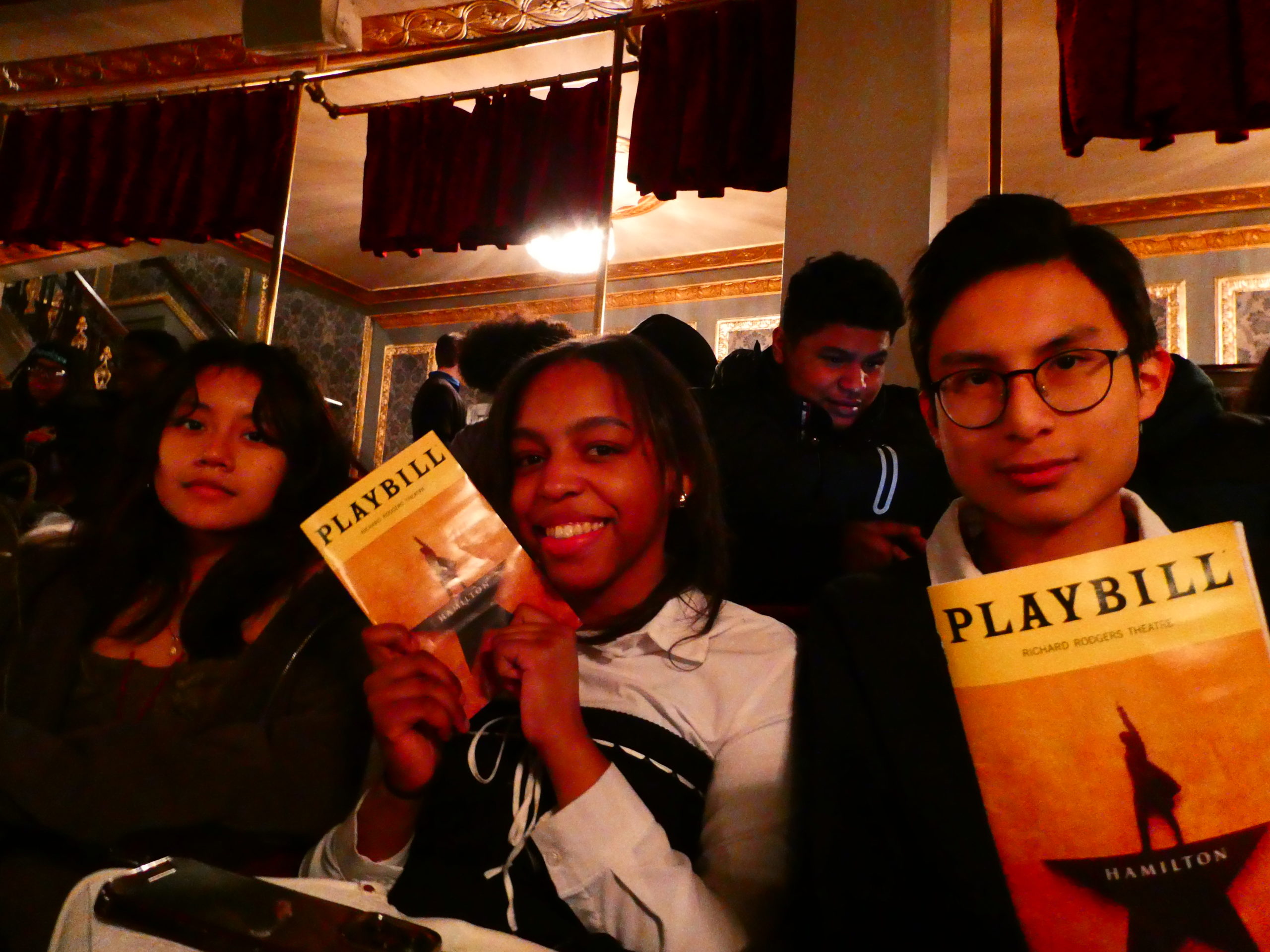 Not only was the experience so immersive, efficient, and moving, it also helped the students gain understanding of founding era history. Oscar Ixcamparij commented, “The musical taught us the impact Hamiltion had on the creation of the US government, as well as the lasting impact he has on us today.” Being able to see history is a whole different learning experience than reading about it in class. Additionally, it is a great way to put history in a context more interesting for high school students. Thony Cielo agrees: “It helps you understand history outside the classroom by displaying their emotions at the time. Also the jokes they made helped make the experience fun and relatable for high school students.” Understanding how the historical figures may have felt while they were making history also helps make them human. It becomes relatable, therefore easier to understand.